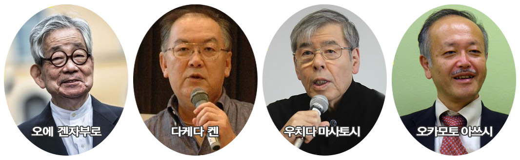 일본에서 가와바타 야스나리(川端康成)에 이어 두 번째 노벨문학상을 받은 소설가 오에 겐자부로(1935~ )는 일본의 대표적인 진보 작가다. 그는 ‘천황제’와 ‘자위대’에 대해 비판적이거나 부정적이다. 당연히 핵을 반대하며 ‘평화헌법’을 강력한 수호자 역할을 다하고 있다.