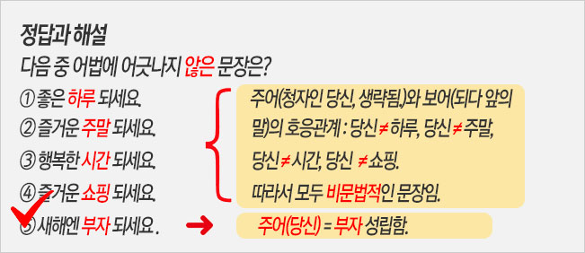 ‘- 되다’로 끝나면서도 어법에 맞는 문장은 있다. “좋은 가수 되세요”나, “훌륭한 작가 되세요” 따위의 인사는 얼마든지 가능한 문장이다. ‘- 되다’로 끝나는 인사 중에서 내가 가장 좋아하는 인사는 “부~자 되세요”다.