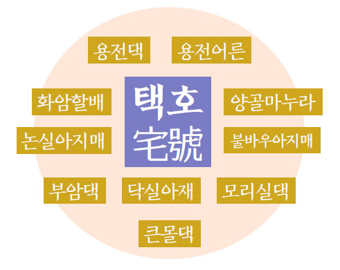 고향이나 처가에 들를 때면 나는 종종 사람들로부터 ‘용전댁 막내’, 혹은 ‘부암댁 맏사위’로 불린다. 용전댁은 돌아가신 어머니의, 부암댁은 장모님의 택호(宅號)다. 할머니의 택호는 ‘양골댁’이었는데 집안의 어른이 되면서는 ‘양골 마느래(마누라)’로 불리셨다. (‘마누라’는 고어에서 ‘높은 사람’의 뜻하는 어휘였다고 한다.)