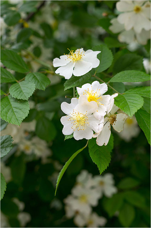 이렇듯 화려한 자태와 향기로 유명한 장미가 서구의 귀족 같은 꽃이라면 찔레는 그야말로 소박한 서민의 꽃이다. 개량되어 여염집 담장이나 건물의 울타리에 심어놓은 장미와 달리 찔레는 양지바른 산기슭, 골짜기, 냇가 등지에 자생하는 꽃이다. 애당초 굳이 개량해 관상용으로 쓸 만한 꽃이 못되었던 것일까.