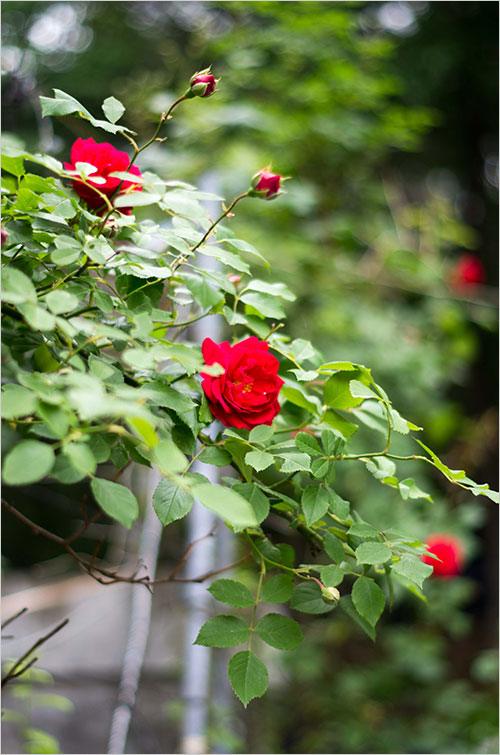 장미는 도시 곳곳에서 이미 대세다. 그 선명하고 도발적인 빛깔이 사람들의 시선을 붙들기 때문일까. 주택가 골목에도 아파트나 공공건물의 울타리에도 장미는 흐드러지게 피어 있다. 흰 페인트를 칠한 울타리 사이로 빨간 장미는 그 빛깔만으로 튀어 보인다.