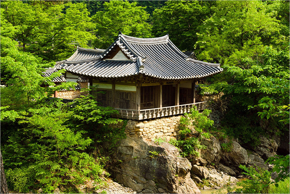 대문을 밀고 마당에 들어서자 텅 빈 마당에 고인 적요가 일렁이는 듯했다. 초간정은 왼쪽 2칸에 온돌방을 들였고 오른쪽 1칸에 누마루를 깔았다. 신을 벗고 마루에 올라 뒤편 난간 앞에 서자 아래로 흐르는 계류와 바윗돌이 한눈에 들어왔다. 물은 정자 바로 밑에서 소를 이루었다가 정자를 감돌면서 방향을 바꾸어 죽림리 쪽으로 흘러간다.