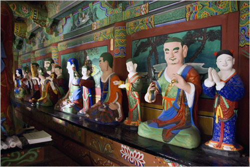 절집은 초라하다. 불사로 새로 세운 대웅전이 날아갈 듯, 방문객을 맞지만, 주변의 조경도 보잘것없고 세심한 관리의 흔적이라곤 찾아볼 수 없는 것도 그렇다. 주변엔 풀만이 무성하다. 대웅전을 지나 응진전으로 드는 길목 오른쪽에 이태 전에는 빨갛게 감을 매달고 서 있던 감나무는 고사한 듯 가지만이 앙상하다. 그 아래 패인 도랑 너머로는 명부전이 건너다보인다.