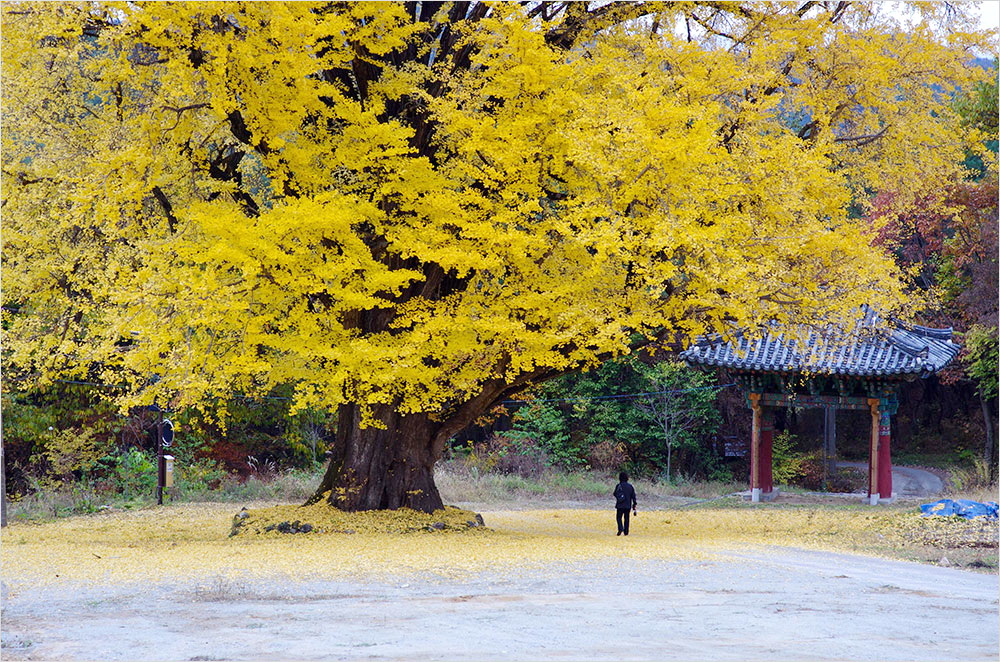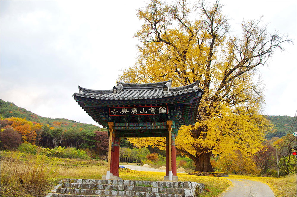 광흥사를 찾는 이를 맨 먼저 반기는 건 길옆에 외따로 선 일주문과 그 주변의 400살도 더 먹은 은행나무다. 이 나무는 500살 가까이 될 것으로 추정되는 길안면 용계리 은행나무(천연기념물 제175호)와 견줄 만하다. 은행나무는 가끔 부는 바람에 점점이 노랗게 익은 잎을 날리고 있었다.