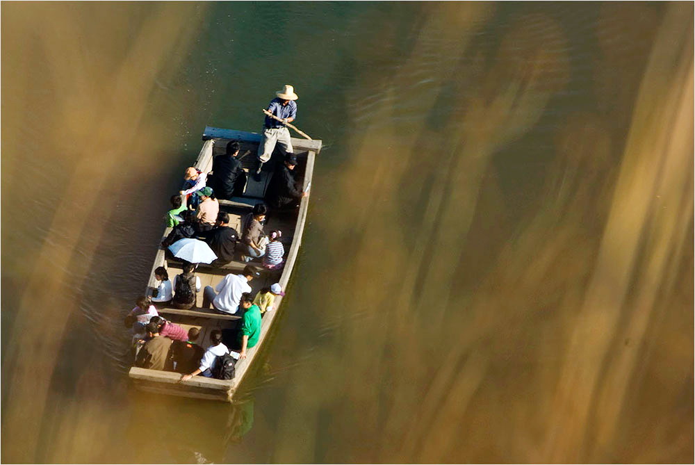 때는 단풍 관광 철, 벼랑 아래 화천에 나룻배 한 척이 떴다. 배 안에는 길손이 가득한데 여인이 든 양산이 하얗게 빛난다. 밀짚모자를 쓴 사공이 든 삿대가 대각선으로 두드러져 보였다. 억새 풀 사이로 렌즈에 잡힌 강물에 승객들의 그림자가 희미하게 떠 있다.