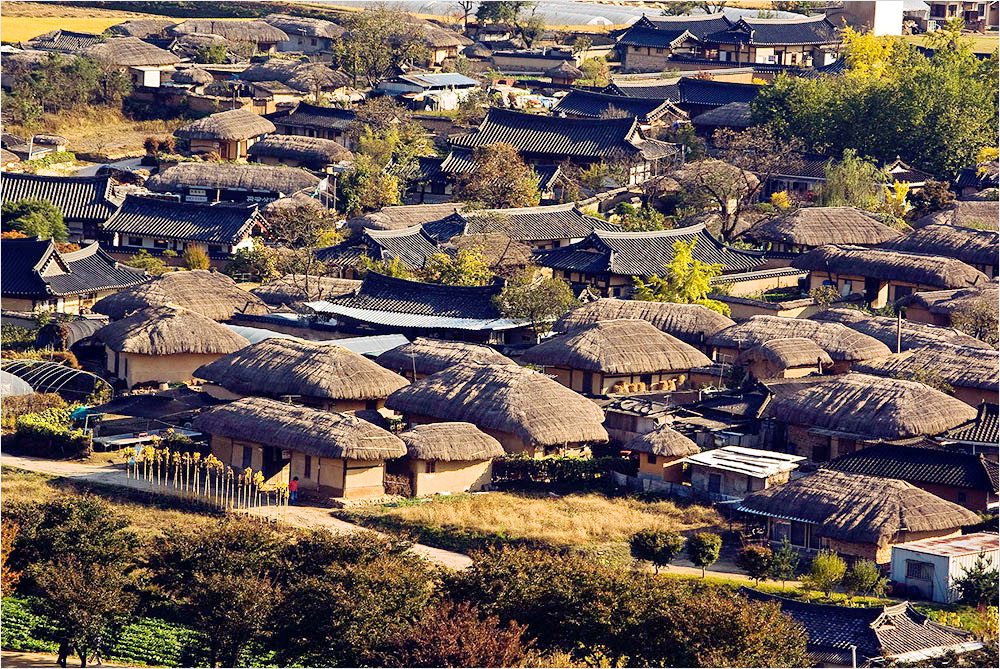 사당인 경덕사 뒤편의 산길을 10여 분 오르면 화산 부용대에 이른다. 부용대는 하회 마을을 마주 보고 있는 벼랑이다. 하회는 하회를 나와야 보인다. 부용대에서 내려다보는 하회 마을, 묵은 이엉의 바랜 잿빛 질감이 두드러진 초가들 속에 기와집 몇 채가 안온하게 녹아 있다. 울바자와 골목길에 선 해바라기와 채마밭 따위가 거기 사는 사람들의 삶을 넉넉하게 드러내 준다. [관련 글 : 부용대, 물돌이동[하회(河回)]의 가을]