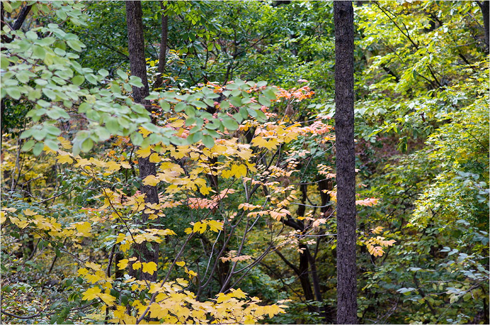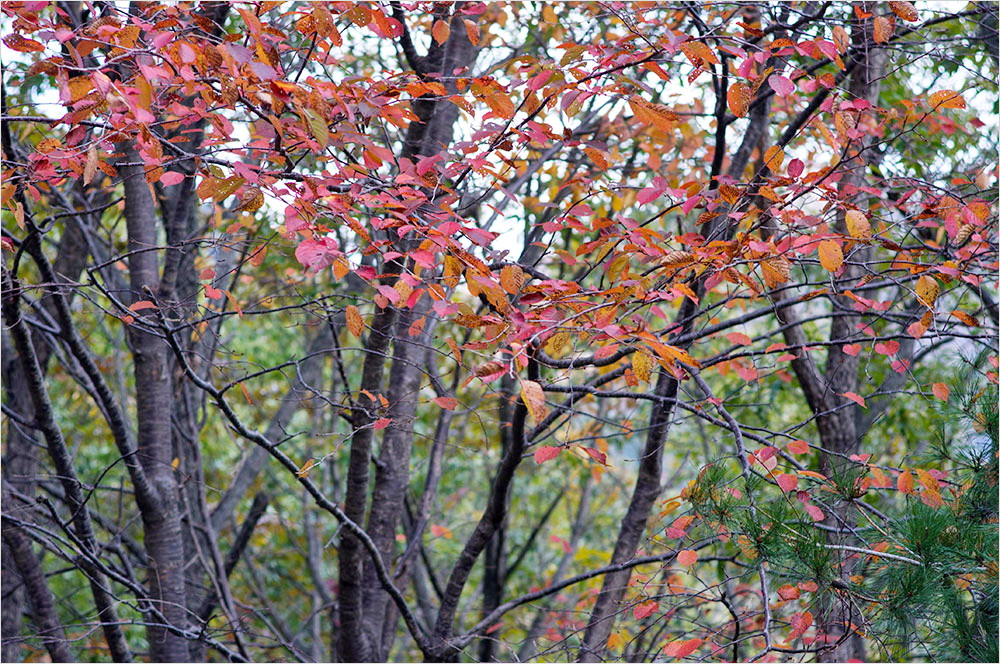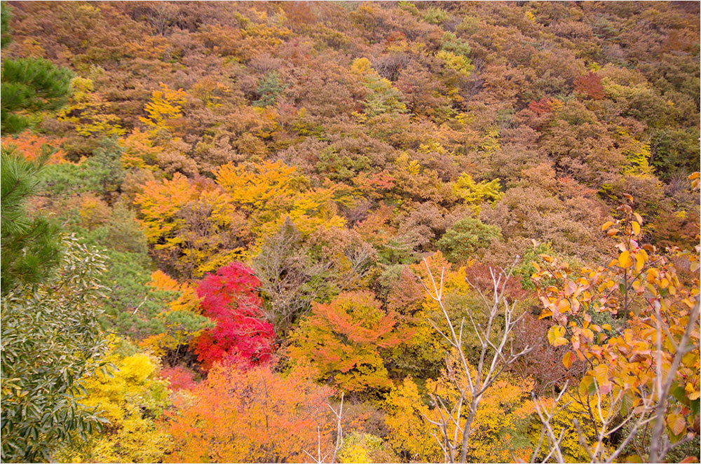단풍은 ‘붉을 단(丹)’자를 쓰지만 정작 숲에 붉은색 단풍이 드는 나무는 그리 많지 않다. 간월산 오르는 길에는 단풍나무는 거의 눈에 띄지 않았고 붉은색 단풍은 붉나무가 대신하는 듯했다. 붉은 단풍 대신 노랗게 물드는 활엽수가 가을의 산빛을 차분하게 가라앉히고 있었다.