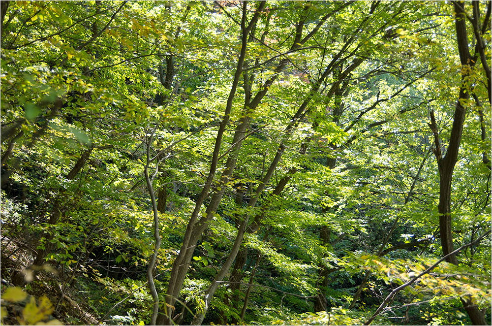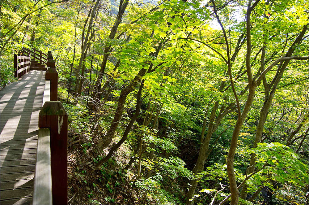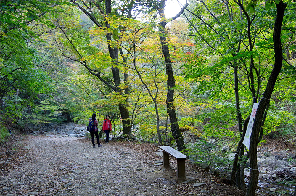 등산로 주변에 빽빽이 들어찬 나무와 숲이 무척 실했다. 10월 중순인데도 위도가 낮아서일까, 단풍은 아직 일렀다. 가끔 노란빛이 섞이기는 하지만 나뭇잎들은 여전히 싱싱한 푸른빛이었다. 10월의 뙤약볕이 따가웠다.