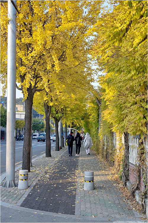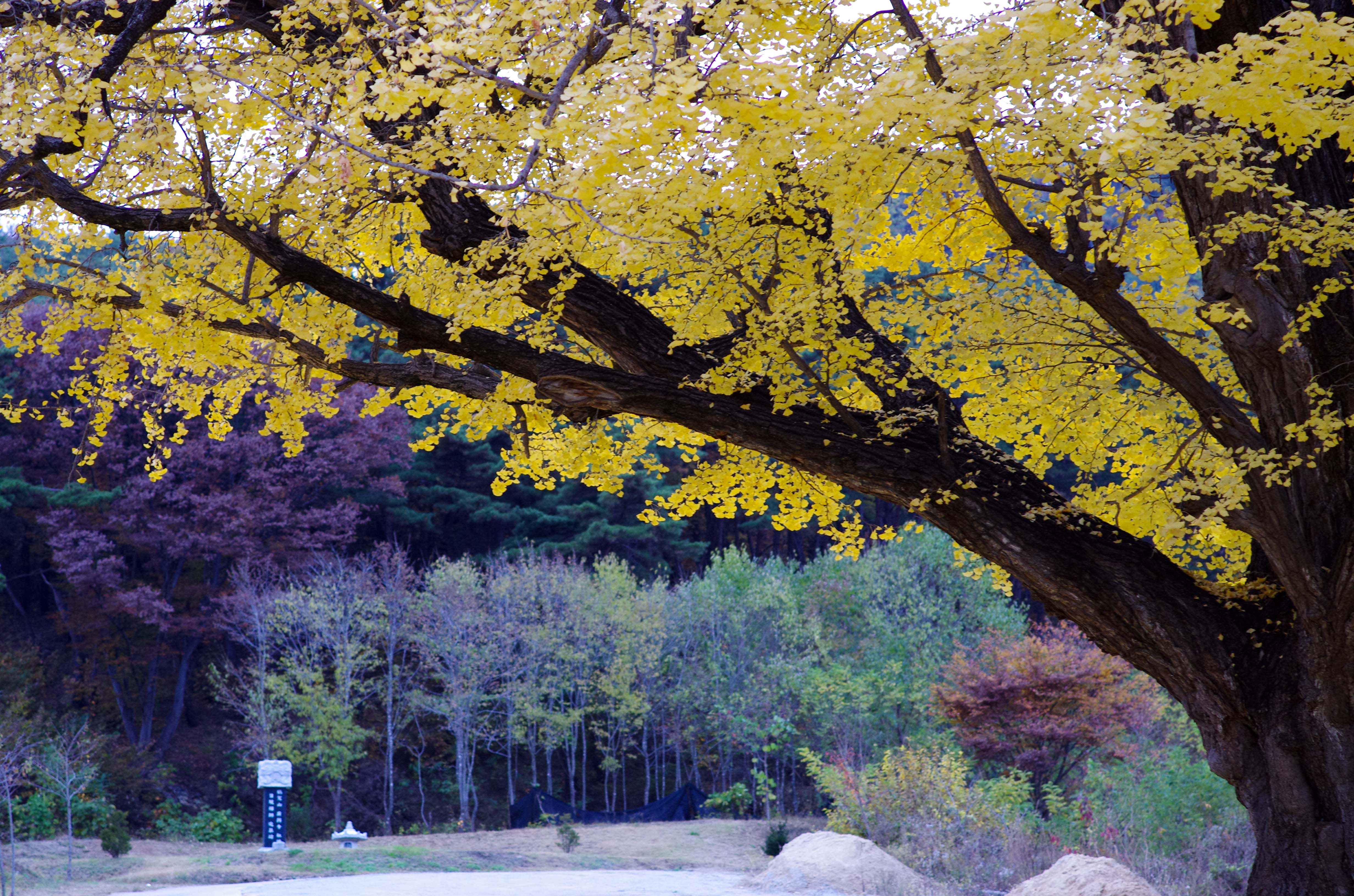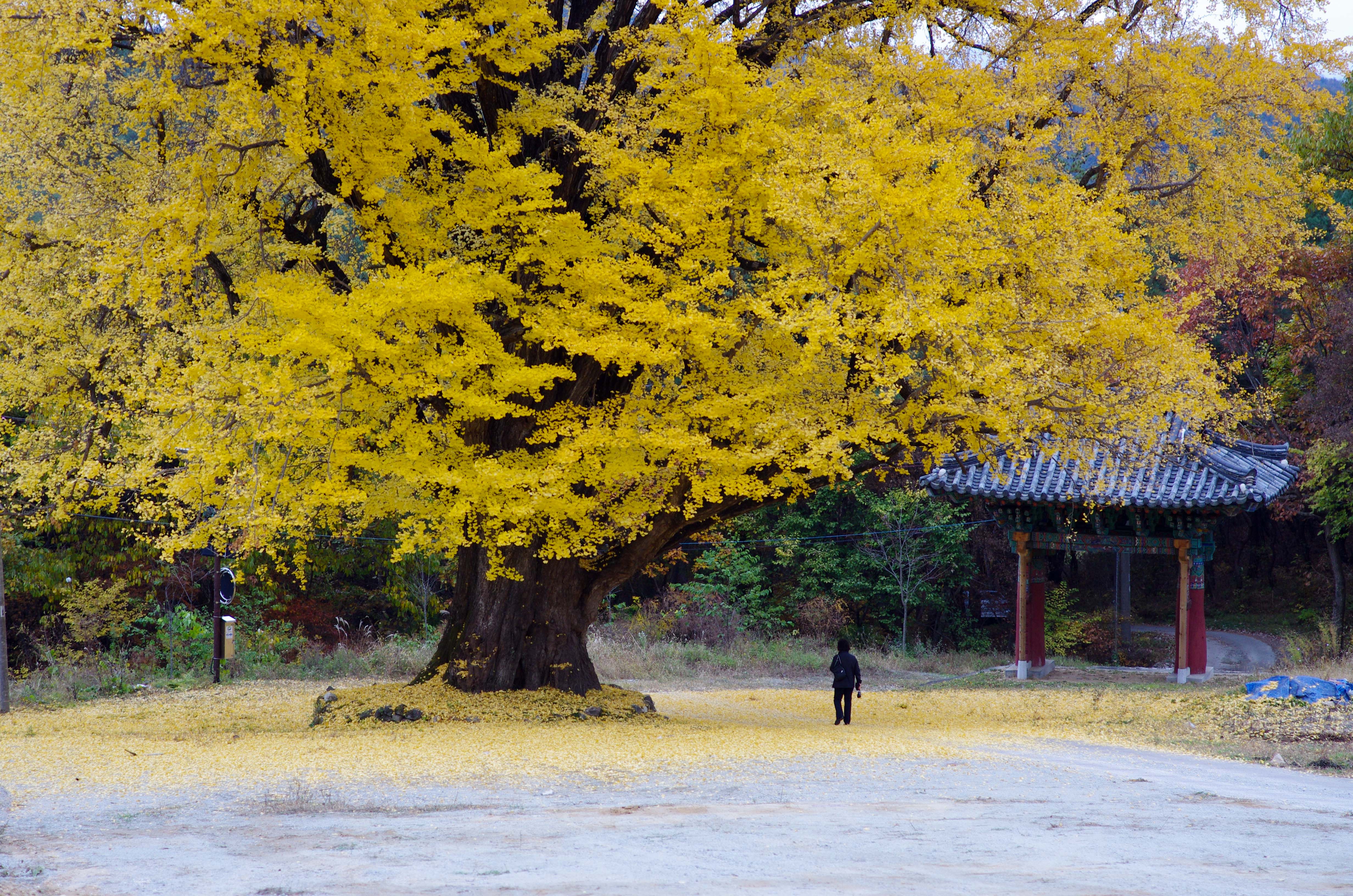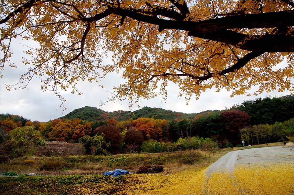 은행나무 단풍은 시기적으로 좀 늦었다. 잎이 꽤 떨어져 나무 밑이 수북했다. 어저께 광흥사로 단풍 소식을 물었더니 스님은 괜찮다고, 사람들이 은행 열매를 죄다 주워가고 있다고 했다. 그래서인가, 나무 아래는 깨끗하다. 은행 열매 때문에 나는 고약한 냄새도 나지 않는다.