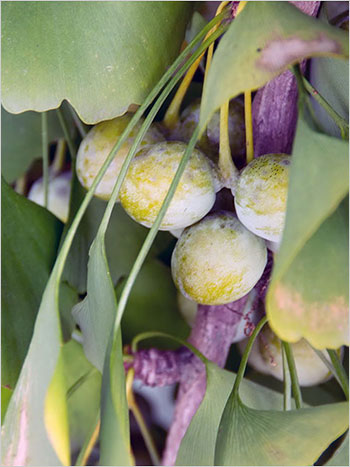은행 열매 특유의 고약한 냄새는 암나무에 열리는 종자의 겉껍질에서 난다. 겉껍질을 감싸고 있는 과육질에 ‘빌로볼(Bilobol)’과 ‘은행산(ginkgoic acid)’이 함유돼 있기 때문이다.