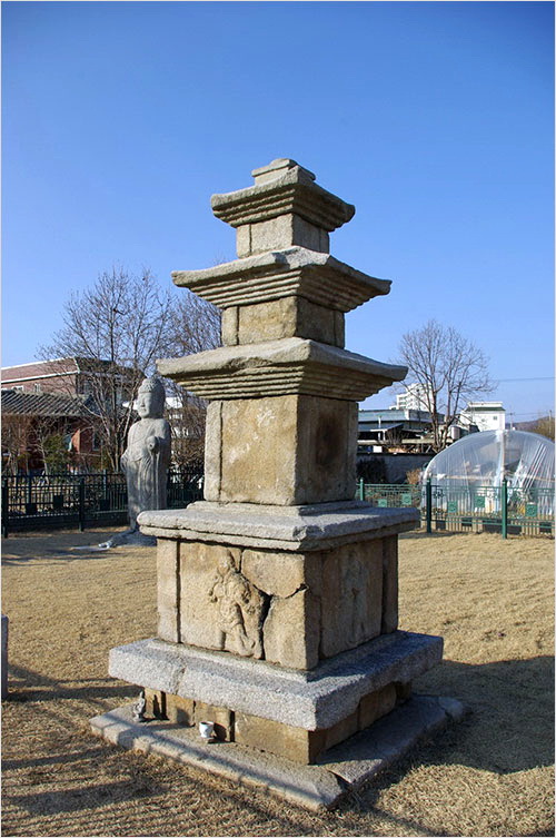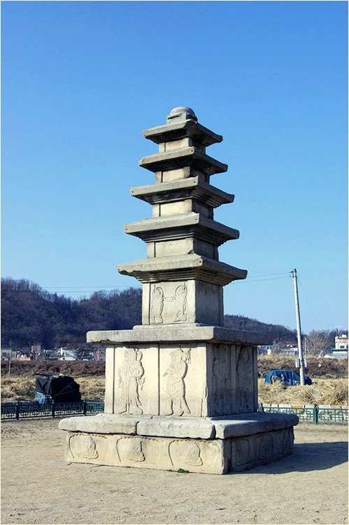 무엇보다 탑 오른쪽을 막아선 한천의 둑길과 보호구역을 삥 둘러싼 철책 때문에 탑은 옹색하고 답답해 보인다. 탑 뒤편은 비닐하우스, 왼편은 주택가가 이어지고 있다. 예천에 사는 이들에 따르면 예천은 통일신라 때부터 절집이 지천으로 세워져 있었다 한다. 얼마만큼 근거 있는 얘기인지는 확인할 길 없으나, 이 땅 어디인들 불국토를 꿈꾸지 않은 고을이 어디 있으랴.