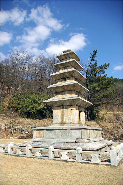 지붕돌 밑면의 받침 수가 줄어들고 있는 점이나 각 부분의 아래에 새긴 괴임 돌이 간략해진 점 등으로 보아 통일신라 후기에 건립된 탑으로 문경시 가은읍에 있는 봉암사의 석탑들과 비슷한 형식이라 한다. 개심사지의 오층탑에 비하면 나이를 좀 더 먹은 셈인데 그래서인가, 이 화강암 탑은 매끈하기보다는 좀 거칠고 질박한 느낌이다.