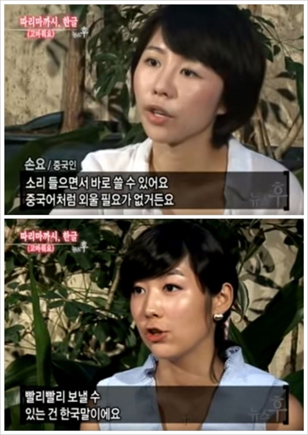 이는 국내 거주하는 외국인들이 휴대폰 문자를 영어가 아니라 한글로 쓰고 있다는 사실에서도 드러난다. 일본인이나 중국인은 물론, 네팔인들도 영어가 아닌 한글을 이용하는 게 훨씬 편리하고 빠르다고 입을 모은다. 역시 별도의 변환 절차 없이 바로 뜻을 전할 수 있는 소리글자의 특성이 빛나는 대목이다.