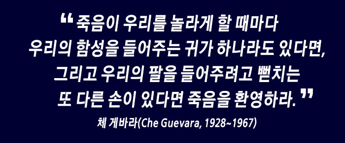 1967년 오늘, 볼리비아 라 이게라에서 볼리비아 정부군의, 아르헨티나 출생의 쿠바 혁명가 체 게바라(Che Guevara, 1928~1967)의 총살형이 집행되었다. 게릴라부대를 조직하여 볼리비아 정부군과 전투 중 종아리에 총상을 입고 생포된 지 하루만이었다. 게바라의 해방을 위한 투쟁의 삶은 서른아홉 살로 마감되었다.