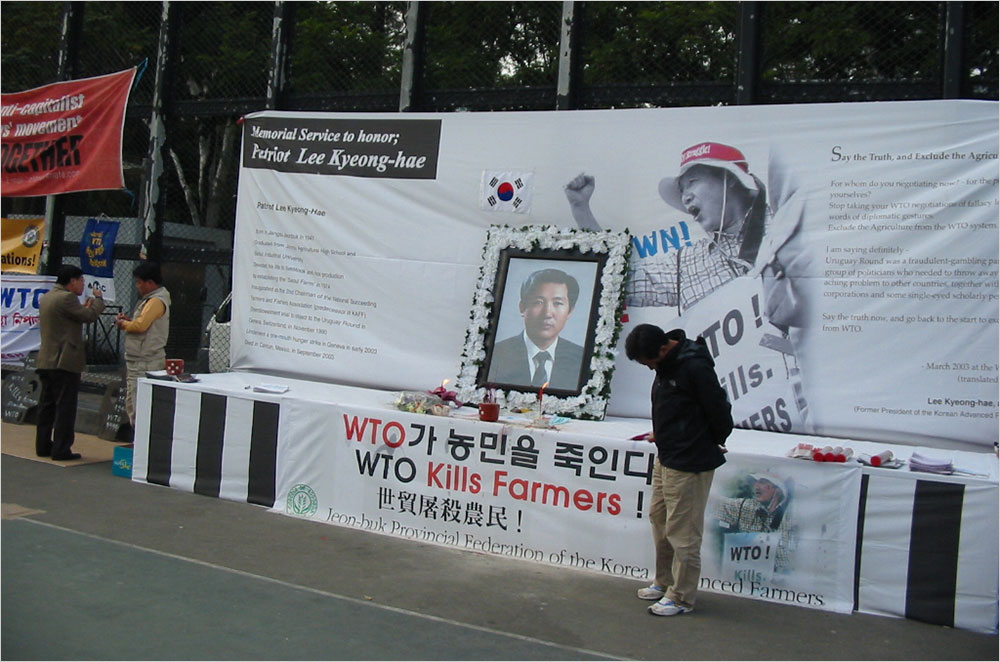 그리고 2005년 한국에서는 농민들의 격렬한 반대에도 불구하고 ‘쌀 관세화 유예 협상 비준 동의안’이 국회를 통과했고 이에 항의, 시위를 벌이던 두 농민이 경찰의 폭력에 희생되었다. 그에 대한 여론의 질타 앞에 경찰청장이 사퇴했는데, 이를 두고 한 논객은 “한 인간의 존엄이나 생명의 가치는 대한민국 모든 고위공직자의 자리를 합해놓은 것보다 훨씬 무겁다.”고 말했다.