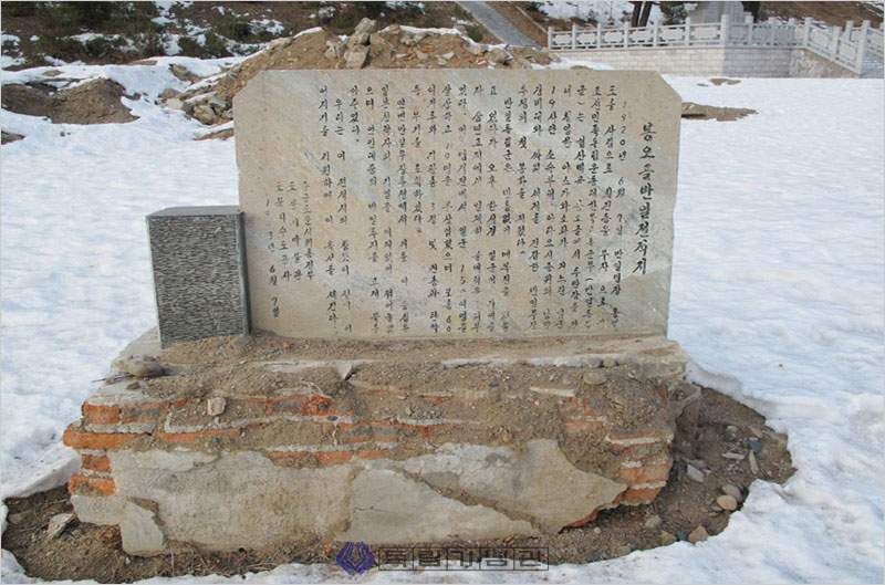 봉오동(1920)과 청산리(1920) 전투의 대승을 이끌었지만, 나라 잃은 독립투사에게는 승리를 즐길 여가조차 주어지지 못했다. 독립군에게 대패한 일제는 간도 일대의 조선인 마을을 초토화하여 1만 명이 넘는 조선인을 학살하고 2,500호의 민가와 30여 개소의 학교를 불태우는 ‘간도 학살’(경신참변)을 자행했던 것이다.