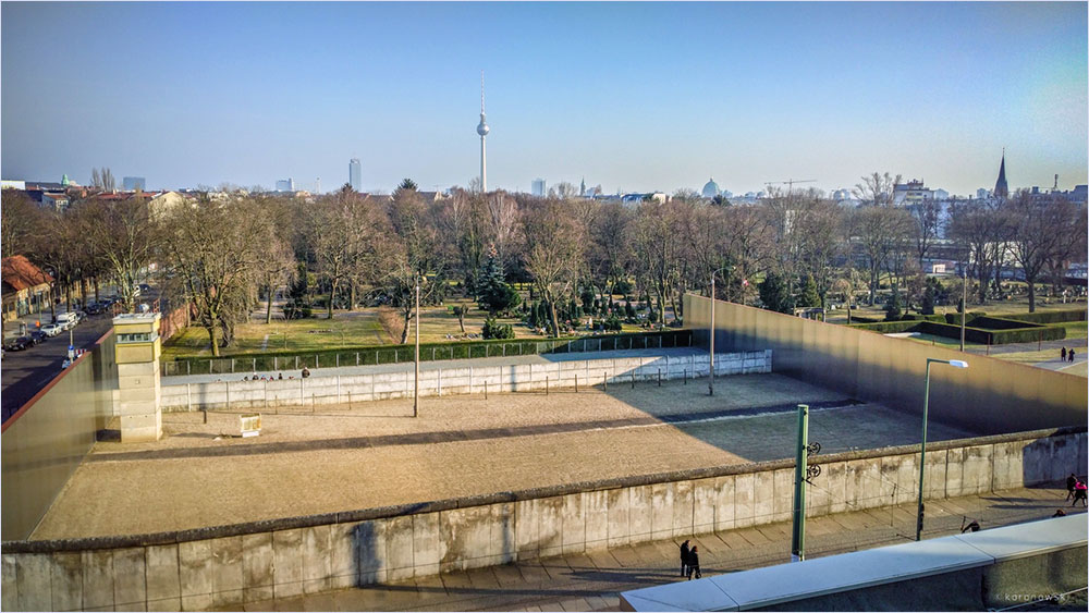 1961년 8월 12일 밤 동독은 서베를린으로 통하는 모든 가능성을 봉쇄하기 위한 장벽을 설치했다. 철조망과 블록으로 이루어진 장벽은 기관총 초소와 지뢰 지역이 설치된 5m 높이의 콘크리트 장벽으로 대체되었다.