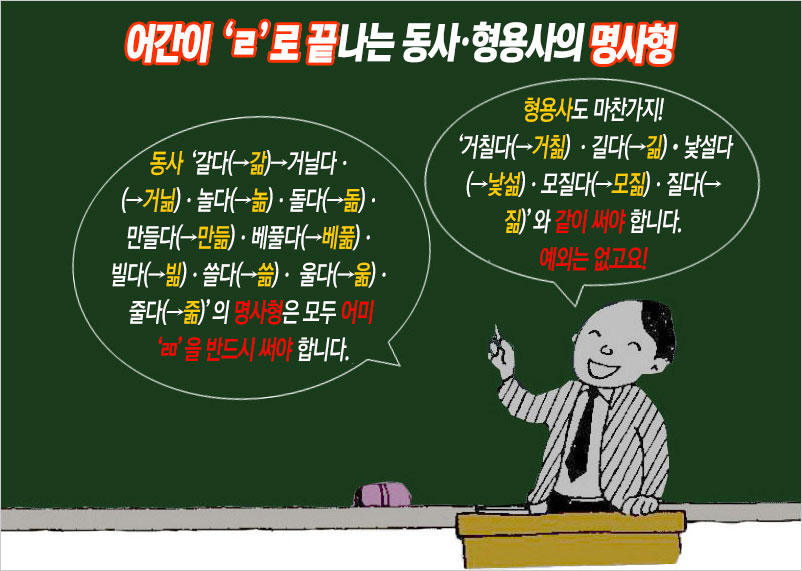어간이 ‘ㄹ’로 끝나는 용언의 명사형은 반드시 ‘ㄻ’으로 써야 한다