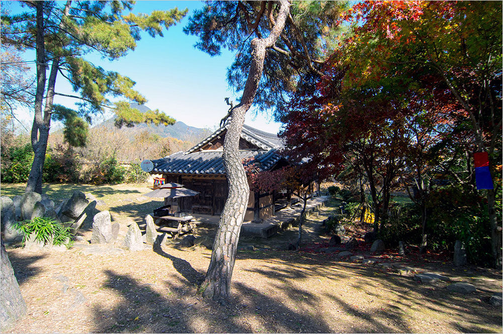 소나무와 단풍나무 사이로 북쪽에 보이는 것은 흔히 ‘안 사랑채’라 부르는 별당이다. 별당은 정면 5칸, 측면 1칸 규모의 한일자형 건물로 부엌과 안방, 대청과 건넌방을 두었다. 앞쪽으로는 툇마루, 뒤와 옆쪽에는 쪽마루를 냈다.