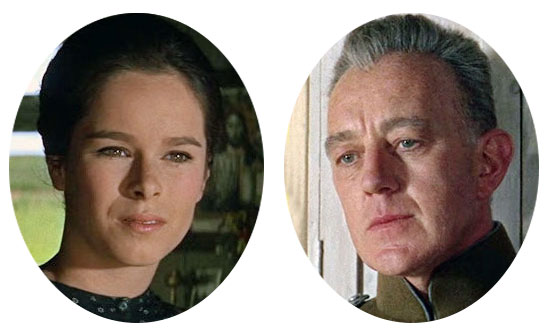 공산당 간부로 나오는 지바고의 이복 아우 역 고 알렉 기네스(1914∼2000)의 모습도 새롭다. 말끔하게 면도한 그의 모습은 8년 전의 영화 <콰이강의 다리>(1957)의 니콜슨 대령 역보다 훨씬 젊어 보여서 흥미롭다. 헌신적이고 슬기로운 여인 토냐 역을 맡은 배우 제랄딘 채플린(1944∼ )은 찰리 채플린의 딸이다.