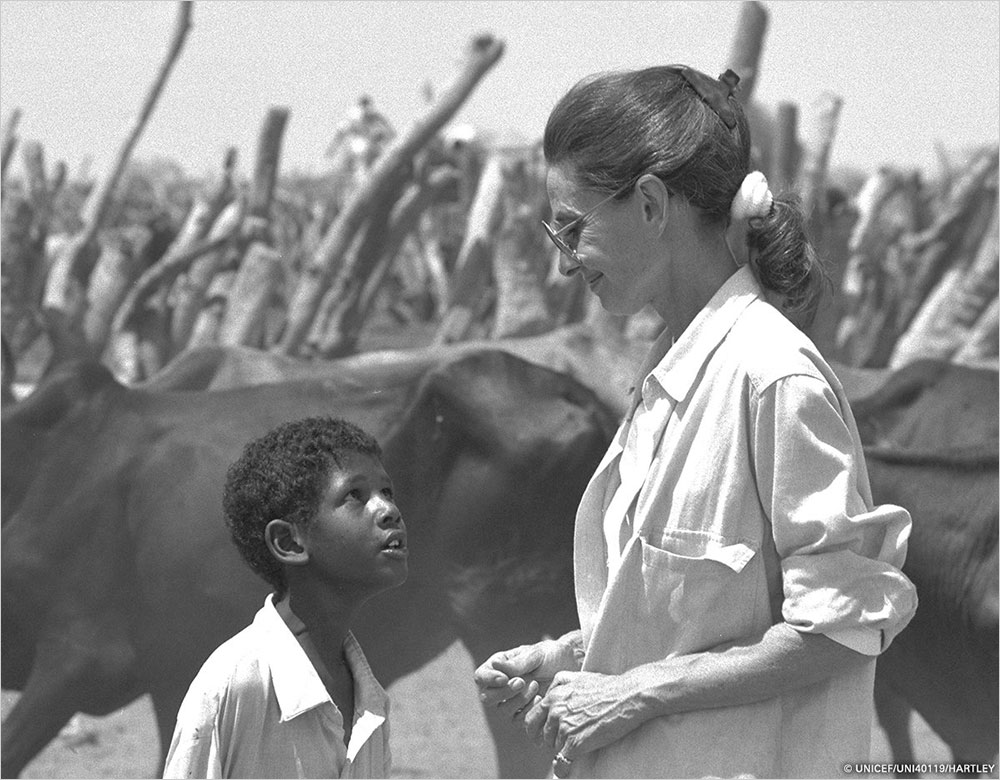 유니세프 대사로서 인권운동과 자선 활동에 참여하고 제삼 세계의 오지 마을을 방문하여 아이들을 돌보며 미소짓는 헵번은 노년에도 불구하고 빛나는 아름다움을 보여주었다. 암 투병 중이던 1992년에도 그는 소말리아를 방문하여 봉사활동에 참여했다.