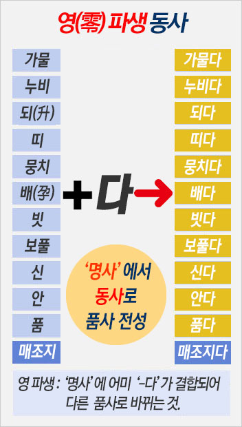 ‘매조지하다’를 잘못으로 설명하는 근거는 ‘매조지다’가 명사에 접사 ‘-하다’가 아닌 어미 ‘-다’가 붙어 동사가 되는 낱말로 보기 때문이다. 우리말은 명사에다 ‘-다’를 붙여 동사를 만드는 형식(이를 ‘영 파생zero modification’라 한다)이 꽤 있다. 이를테면 ‘가물다, 누비다, 되다, 띠다, 뭉치다, 배다, 빗다, 보풀다, 신다, 안다, 품다’ 따위가 그것이다.