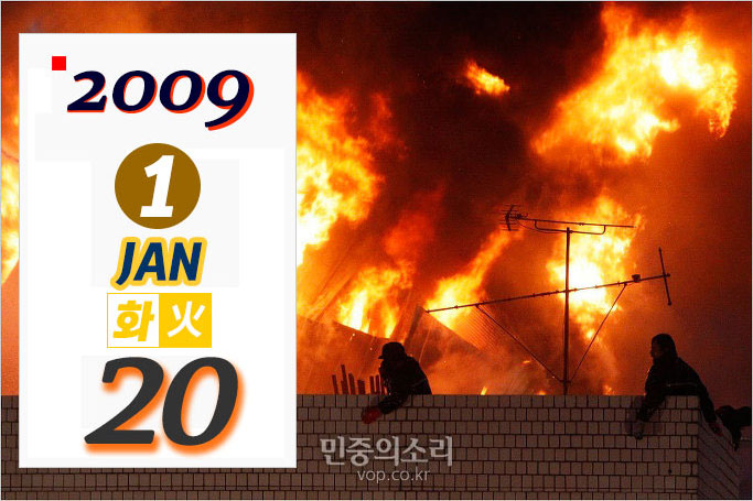 용산 남일당 건물에서 철거 투쟁을 벌이던 철거민 다섯 명이 경찰의 무자비한 진압 작전에 희생됐다. 경찰은 사고 경위를 숨기려 했고 서둘러 조사를 마쳤다.”