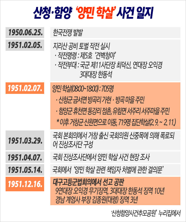 [역사 공부 ‘오늘’] 1951년 2월 7일, 국군 11사단 9연대 3대대 산청·함양 양민 학살