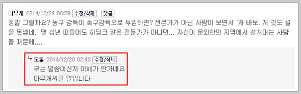 아무리 머리를 갸웃해 봐도 그 본뜻이 썩 드러나지 않는 댓글도 적지 않다. ‘경기도 교육청의 교장 수업’ 이야기를 다룬 내 글에 붙은 ‘아무개’의 글과 ‘부분적 언론자유국’으로 떨어진 우리나라 언론 상황을 다룬 글에 붙은 ‘더러운 민낯’의 댓글이 그것이다.