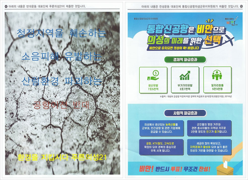 군수와 군청이 앞장서 ‘유치 찬성’ 홍보를 했으니 투표 결과야 뻔하겠지만, 막상 80~90%를 넘는 찬성률은 좀 뜻밖이다. 친구가 주민투표 며칠 후 올린 블로그 글을 읽으면서 ‘토박이가 아닌 귀촌인인 그에게 신공항을 둘러싼 일련의 상황이 만만찮다’는 걸 깨달았다.