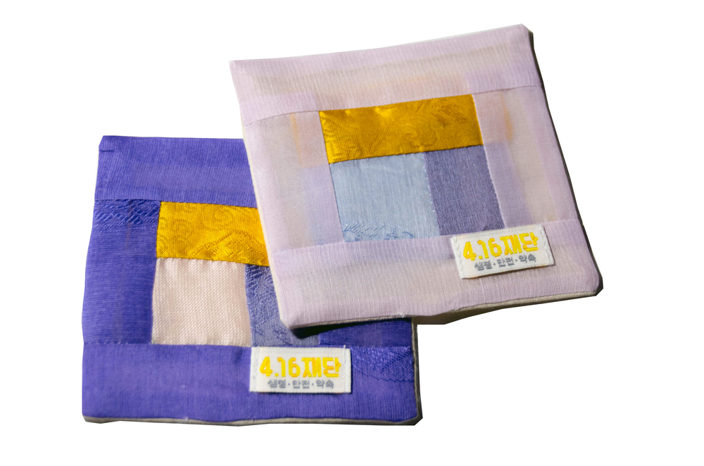 기계로 제작한 것과 달리 반듯반듯하지도 세련되지도 않은 물건이지만, 여러 빛깔을 천을 한데 모아 만든 컵 받침에는 자식을 잃은 어머니들의 아픔이 고스란히 담긴 듯하다. 그걸 무심히 컵 받침으로 쓰는 건 쉽지 않을 것 같다.