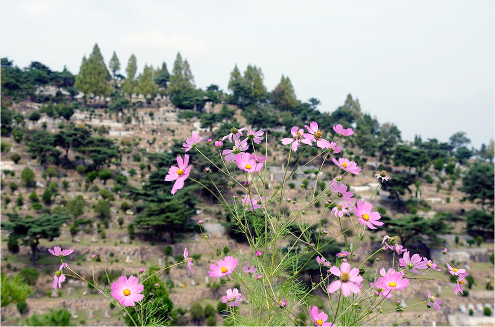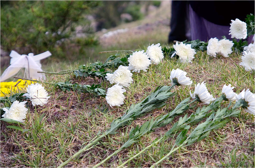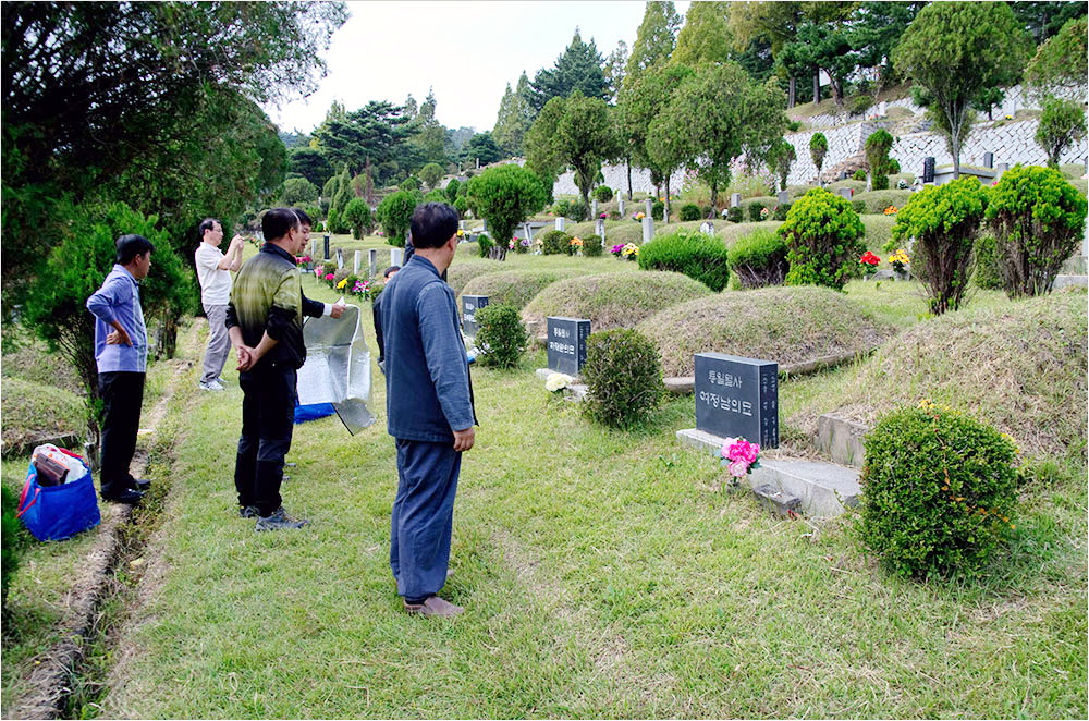 40년 전부터 운영되어 온 공원묘지는 산의 경사면을 빼곡히 묘지를 채우고 있었다. 군데군데 화사하게 피어 있는 연분홍 코스모스가 바람에 하늘거리고 있었다. 동암 선생의 묘소가 있는 산등성이 반대쪽에 묘역에는 인혁당 열사 네 분의 묘소가 있다.