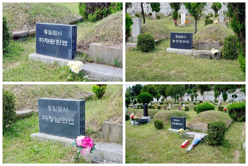 추모제를 끝내고 동암의 차남인 치과의사 도영주 원장의 안내로 구미참여연대 회원들과 함께 반대쪽 묘역의 인혁당 열사의 묘소를 찾았다. 하재완, 도예종, 여정남 열사는 앞쪽에, 송상진 열사는 뒤쪽에 모셔져 있었다.