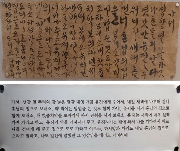 이 전시실에는 또 우리나라 최초의 사액(賜額) 서원인 소수서원(紹修書院)과 유학자인 안향 선생 관련 유물들과 퇴계 이황의 글씨 등이 전시되어 있다. 특히 내가 흥미로웠던 것은 한글 편지 몇 점이었다. 옛 한글로 쓴 세로쓰기 편지 글씨는 우리 어머니께서 지은 제문에 있던 바로 그 글씨였다.