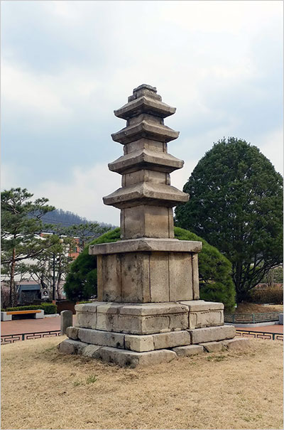 왼쪽 탑은 경북 칠곡군 약목면 복성리의 정도사(淨兜寺) 터 오층석탑이다. 1924년 경복궁으로 이전했다가 1994년에 이곳으로 옮겨왔다. 약목 복성리라면 가까운 데여서 그 절터가 어떻게 남아 있나 검색해 봤는데 거기 경부선 철길이 지나간 모양이었다.