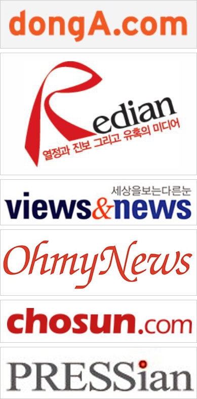 <조선>과 <동아>와는 달리 진보 쪽의 인터넷 언론 다수도 영자 제호를 쓰고 있다. 그 중심에 <오마이뉴스>가 있다. 독특한 영자 로고는 이미 이 신문의 상징이 되었다. <프레시안>과 <레디앙>, 그리고 <뷰스앤뉴스>도 한글 제호 없이 영자 제호를 계속 쓰고 있다.
