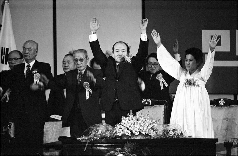 1980년 8월, 대통령 최규하가 물러나고 8월 27일, 통일주체국민회의는 잠실체육관에서 총투표자 2525명 가운데 2524명 찬성(무효 1표)으로 전두환을 11대 대통령으로 선출했다. 신군부의 8차 개헌안은 10월 22일 국민투표에서 투표율 95.9%, 찬성률 91.6%로 확정됐다. [관련 글 : 최규하 대통령, 8개월 10일 만에 ‘허수아비 옷’을 벗다]