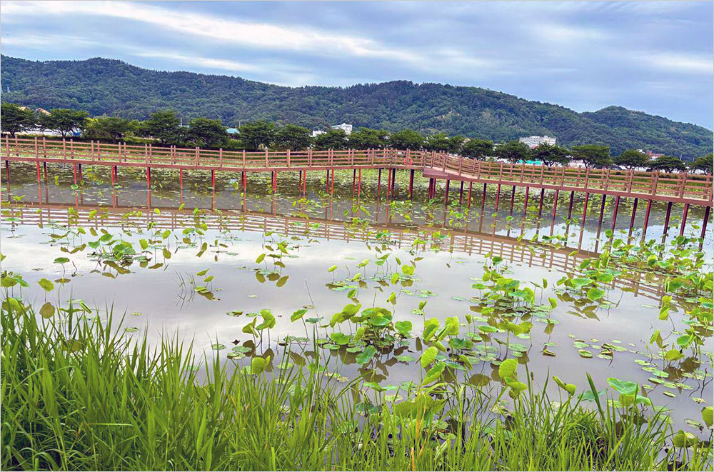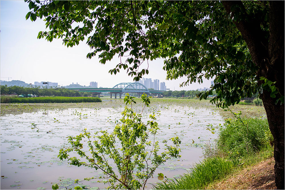 6월 중순쯤이면 연꽃이 피어나기 시작할 것이다. 연꽃이 피면 샛강은 다시 연꽃을 보러 찾는 시민으로 붐빌 것이다. 도심은 아니지만, 도시 안에 이런 호수와 벚나무길, 거기에 맨발 길까지 갖춘 생태공원이 있다는 것은 시민들에겐 축복이라 해도 좋겠다. 거기다 금오천과 달리 주변에 가게 하나 없는 것도 가외의 행운이라 할 만하다.